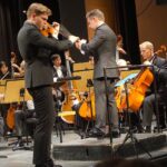Im Einführungsvortrag sagte der Dirigent auf die Frage von Rainer Lepuschitz, wie er das Spiel von Tassilo Probst erlebe, dass er ihn sofort für die Konzertsaison 25/26 mit seinem Orchester in Stralsund eingeladen habe. In den Einführungsvorträgen wird der Blick der Besucher immer auf die Hintergründe der Musik gelenkt, sodass dann nicht nur der Höreindruck erfreut, sondern auch das Verständnis für die Komposition und ihre Intention geweckt wird. Florian Csizmadia erklärte auch in seiner Anmoderation viel Wissenswertes zu den Werken, zum Beispiel zum opernhaften Charakter des Violinkonzerts von Paganini, einen Vergleich, den er auch auf die 8. Sinfonie von Ludwig van Beethoven anwendete. Auch hier finden sich komische Elemente einer Opera buffa. Mit einem, ungewöhnlich im Piano endenden ersten Satz, mit einem, weder langsamen, noch lyrischen zweiten Satz, in dem sich der Komponist mit einem marschähnlichen Ostinato und pulsierendem Rhythmus der Holzbläser über die „Rhythmus-Bezogenheit“ lustig macht, möchte Beethoven ebenso irritieren, wie mit dem „nicht tanzbaren“ Menuett im dritten Satz mit einer ironisch-volksmusikalischen Einlage und den unvermittelten Fermaten im vierten Satz. „Beethoven hat mit diesem humorvollen Unterton den Zuhörern die Zunge ‘rausgestreckt“, war sich der Dirigent sicher und brachte dem Publikum im Theatersaal die achte Sinfonie voller Sommerfreude auf eine Weise nahe, die nachhaltig in Erinnerung bleiben wird – mit sehr engagiert-präzise spielenden und mit voller Konzentration agierenden Philharmonikern.