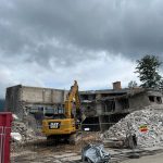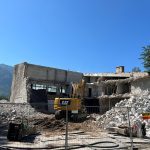 Seit mehreren Tagen läuft der maschinelle Abbruch auf vollen Touren, Teile des Abbruchs, wie die Natursteinfassade im Osten und der verbaute Beton werden an der Baustelle gebrochen. Mit diesem Material wird der alte Keller verfüllt. Auf diesem massiven Füllmaterial wird dann der Neubau erstellt. „Die Baumeisterarbeiten sind vergeben und beginnen unmittelbar nach dem Ende des Abbruchs, voraussichtlich Anfang August“, so Bürgermeister Andrelang. Nach einer langen mehrjährigen Planungsphase und vielen kontroversen Diskussionen zum Neubau der Sporthalle ist damit ein Anfang zu sehen, die ersten Schritte zum Bau der neuen Halle sind gemacht.