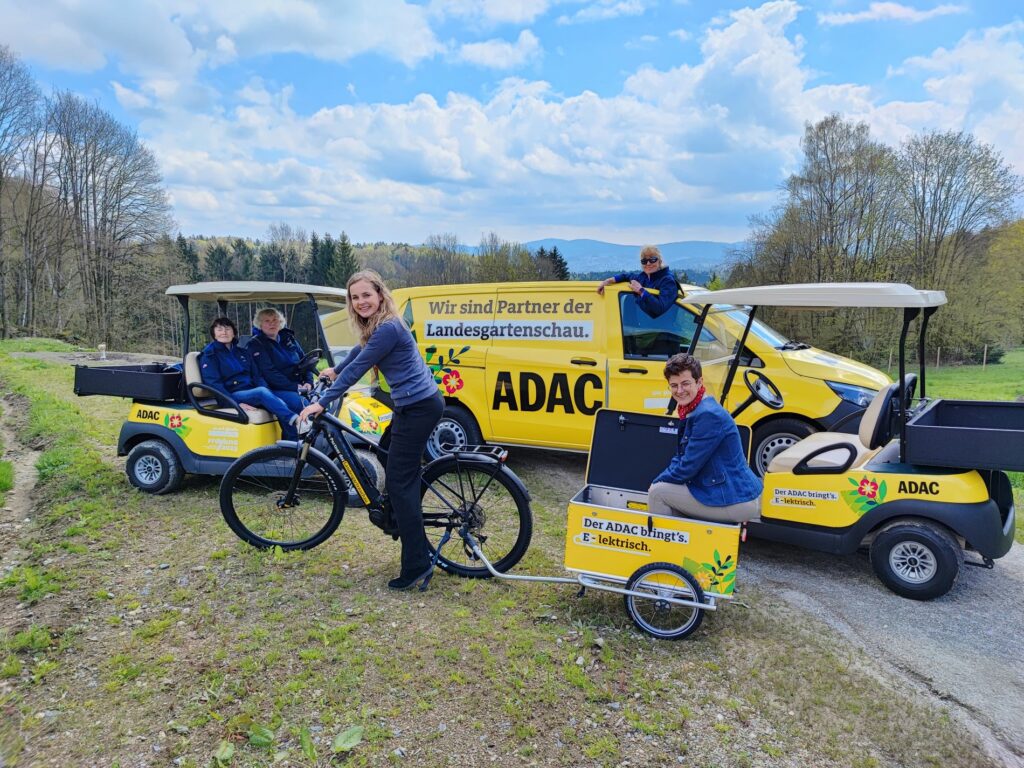Freyung. Über Berg und Tal, über Stock und Stein: Die Mitarbeitenden der Landesgartenschau auf dem Geyersberg in Freyung müssen beweglich sein auf dem elf Hektar großem Gelände. „Wir machen sie mobil“, sagt Sophie Hufnagl, zuständig für Veranstaltungsmanagement beim ADAC Südbayern. Der ADAC ist Kooperationspartner der Landesgartenschau und stellt dem Team extra einen Fuhrpark zur Verfügung – komplett elektrisch. Aber auch für die Besucherinnen und Besucher ist an verschiedenen Wochenenden auf dem Gelände der Gartenschau vieles rund um Mobilität geboten. Zudem verkauft der ADAC in seinen zahlreichen Geschäftsstellen auch Eintrittskarten für die Landesgartenschau unter dem Motto „Wald.Weite.Wunderbar.“ vom 25. Mai bis 03. Oktober.