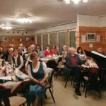 Nach einem Rückblick auf die Aktivitäten des vergangenen Jahres, gemeinsames Singen der traditionellen Weihnachtslieder, begleitet von den Steirer-Musikanten des Vereins, Monika und Felix Lämmel, zusammen mit Waltraud Lehman, an der Zither. Bevor es zum Buffet mit den Gänsekeulen ging, dann noch adventliche Musikbeiträge vom Hackbrett Consort Kleinmachnow, mit Irmgart Mann, Denise Pinta, Ines von Nolting und dem Vorsitzenden des Vereins. Ein Highlight des Abends war der Kleinmachnower Dreigesang, mit Irmgart Mann, Andrea Reinfeld, Johanna Einspanier und Waltraud Kruck. Für den Einsatz des Hüttenteams hinter der Theke, Patricia, Matthias, Detlef und Andreas ein herzliches „Vergelt’s Gott“. Es war eine gelungene bayerische Weihnachtsfeier in der Almhütte der Bayern in Berlin, zur Pflege der bayerischen Traditionen in der Bundeshauptstadt.