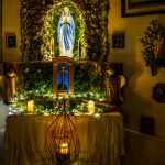 Die Lourdeskapelle in Guggenbichl war am Namenstag des Heiligen Nikolaus an der Reihe bei der heurigen Adventaktion des Weihnachtsmarktes Achenmühle e.V. Jeden Tag öffnet sich in Achenmühle, Höhenmoos oder in einem der Nachbardörfer in einem Haus ein Fenster, um auf diese Weise Adventskalender-Freuden zu verbreiten. Unsere Aufnahmen entstanden am Abend bei der Kapelle, die ursprünglich ein kleiner Bildstock war, später entstand daraus eine Lourdes-Grotte und dann eine Kapelle. Diese wurde 1982 von der Familie Loferer nach dem Gaufest beim Trachtenverein “Edelweiß” Höhenmoos in Privat-Initiative originalgetreu erneuert. Nach Einbruch der Dunkelheit und im Laufe des Abends kamen auch der Heilige Nikolaus mit seinem Knecht Rupprecht sowie einige Weisen spielende Musikanten vorbei. Bei dieser Aktion des Weihnachtsmarktes Achenmühle gibt es keine festen Uhrzeiten, zu denen sich die Leute vor dem “Tages-Fenster” zur Betrachtung einfinden.