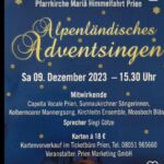 Am vergangenen Samstag konnte in der Pfarrkirche Mariä Himmelfahrt in Prien am Chiemsee wieder das Alpenländisches Adventsingen stattfinden. Zur musikalischen Gestaltung wurden im Auftrag der Prien Marketing GmbH namhafte Volksmusik- und Gesangsgruppen eingeladen.