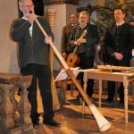 Ein besonderer Kunstgenuss war am letzten Samstag, 7. Dezember, das Alpenländische Adventskonzert unter Beteiligung des international berühmten Alphorn-Solisten, Franz Schüssele. Daneben waren weitere Mitwirkende die Aufhamer Saitenmusik, der Chiemgauer Zwoagsang und die Traunsteiner Trompe-Bläser. Mit einem Klangbild aus Alphornklängen (Franz Schüssele) und Orgelmusik (Andrea Wittmann) wurde das Konzert stimmungsvoll eröffnet. Eindrucksvolle Stubenmusik folgte von der Aufhamer Saitenmusik. Mitreissende barocke Jagdhornklänge ließen die Traunsteiner Trompe-Bläser erklingen. Dazu sei erwähnt, dass eine Trompe ein spezielles Jagdhorn ist, dass in insbesondere in Frankreich während der Barockzeit für Jagdhornmusik verwendet wurde.