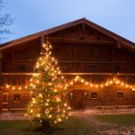 BHM_Adventsmarkt (1+4).jpg: Der Bartlhof mit dem großen Christbaum. © Bezirk Oberbayern, Bauernhausmuseum Amerang