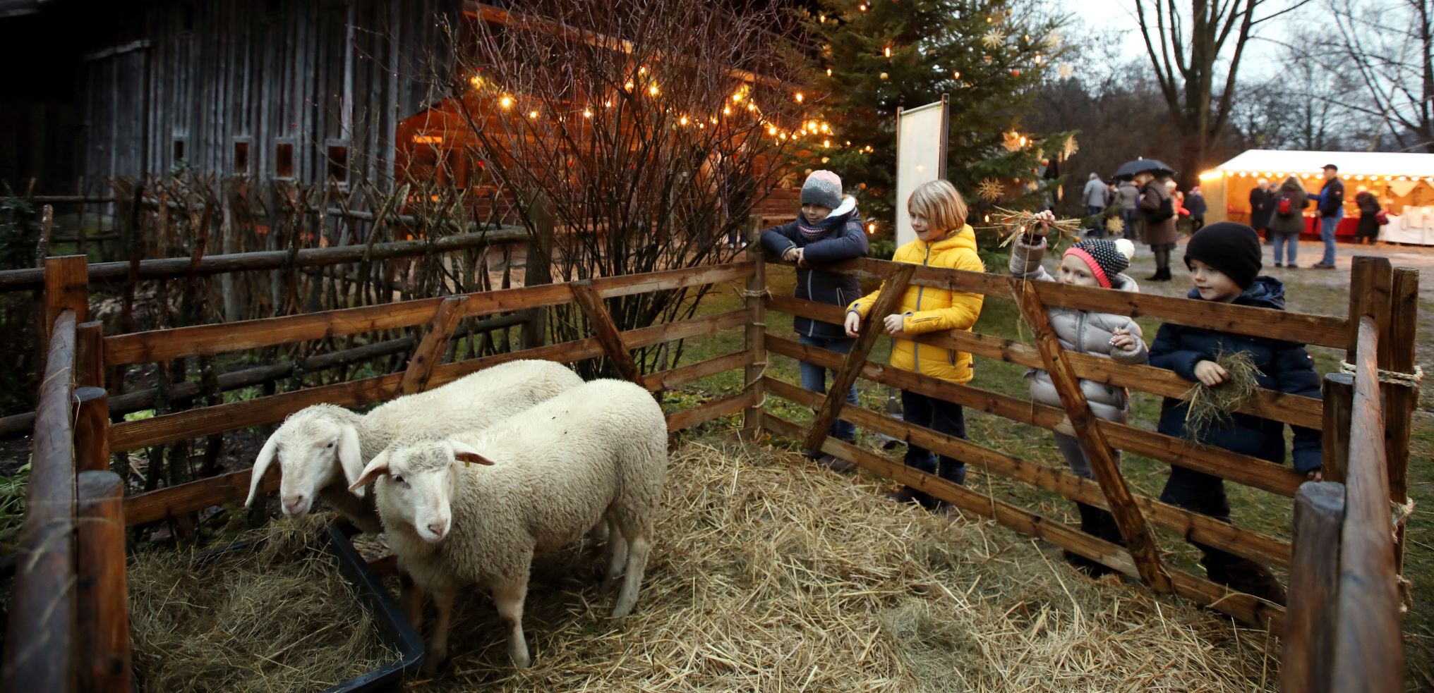 Die Schafe ziehen die jungen Besucherinnen und Besucher an. © Bezirk Oberbayern, Bauernhausmuseum Amerang, G.Nixdorf