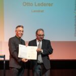 Seine Entlassungsurkunde in den Ruhestand wurde Randolf John schlussendlich durch Landrat Otto Lederer überreicht. Bei seinen Abschiedsworten verwies Lederer auf den besonderen Stellenwert der Wirtschaftsschule des Landkreises Rosenheim. Dass er bei dieser Wertung befangen sein könnte, stritt der Landrat nicht ab, ist die „WsAlp“ doch die einzige kommunale Schule des Landkreises. Die lobenden Worte über diese besondere Schule höre er aber überall in der Region und gab dieses Lob an die Schulleitung und das Kollegium dieser Schule weiter. Lederer betonte in seiner Rede auch die vielfältigen Verbindungen von Randolf John, der seit 2018 Schulleiter an der Wirtschaftsschule war, zu verschiedenen schulischen Institutionen und Verbänden, wodurch er seinen Einfluss als „Netzwerker“ für die Wirtschaftsschulen Bayerns und für seine Aiblinger Schule im Besonderen geltend machen konnte.
