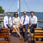 Landtagspräsidentin Ilse Aigner hat mit Mitgliedern des Landtagspräsidiums auf Herrenchiemsee die Wanderausstellung „Orte der Demokratie in Bayern“ eröffnet. Zuvor enthüllte sie am Besucherzentrum den goldenen Gedenkwürfel, der nun auf der Insel auf die Bedeutung des Ortes für die Demokratiegeschichte hinweist.
