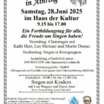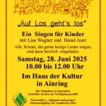 Der Verein Aufgspuit und gsunga e.V. lädt auch heuer wieder alle Singbegeisterten herzlich zum traditionellen Singtag ein. Unter dem Motto „Wann des Singa net war…“ findet die Veranstaltung am Samstag, den 28. Juni 2025, im Haus der Kultur in Ainring (83404 Ainring, Am alten Schulhaus 5) im Rahmen des Ainringer Kultursommers statt. Eingeladen sind alle, die Freude an alpenländischen Volksliedern und Jodlern haben – egal ob geübt oder spontan, ob allein oder in der Gruppe.