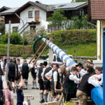 Auch in Aising bei Rosenheim ziert ein neuer Maibaum den Ortstmittelpunkt. Bei schönstem Wetter war das Bringen mit dem Pferdegespann und das Aufstellen ein Genuß-Tag für die vielen Beteiligten und Zuschauer.