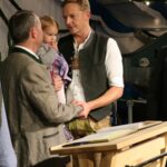 Bayerns Wirtschaftsminister Hubert Aiwanger (hier mit dem Kreisvorsitzenden Sepp Lausch und dem Bezirksrat und stellvertretenden Landrat Sepp Hofer von den freien Wählern) trug sich bei seinem Bieranstich im Festzelt zum Aschauer Markt in das Goldene Buch der Gemeinde Aschau ein.
