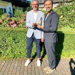 Bericht und Foto: Sepp Resch, Lions-Club Prien a. Chiemsee – Glockenübergabe von Dr. Alexander Simon an Alexander Hagenbrock (li.)
