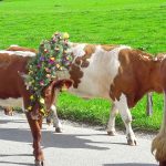 Genau zum richtigen Zeitpunkt am richtigen Ort war der Samerberger Fotograf Jörg Schäfer als er von Grainbach nach Frasdorf fuhr und in der Ortschaft Ruckerting auf eine kleine Herde von Almvieh traf. Als Zeichen der Dankbarkeit wurden die Tiere schön geschmückt – wie diese Aufnahmen zeigen.