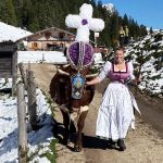 Zuletzt wird die Leitkuh geschmückt. Erst wenn sich die Sennerin in Bewegung setzt, geht’s heimwärts!