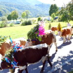 Ist in dem vergangenen Sommer alles gut gegangen auf der Alm und kein Unglück in der Familie passiert, dann werden die Rinder aufwendig geschmückt für den Heimweg. Wochenlang sitzen die Sennerin und der Senner und basteln an dem Kopfschmuck. Hier kommen die Tiere vom Grafn Hof zurück.