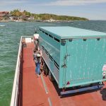 Christine Perl, Enkelin von Michael Berneder, hat inzwischen die Landwirtschaft mit ihrer Familie übernommen und sie führt mit Unterstützung ihres Mannes Felix und ihres siebenjährigen und gleichnamigen Sohnes   die Bio-Schäferei.   Christines Schwager Fritz Perl spannte Bulldog und Anhänger ein, um die Reise auf die Krautinsel zu starten. Als wüssten die 22 Berg- und Mutterschafe, der Bock und eine Ziege Bescheid: sie gehen bereitwillig auf den Transportwagen. Eine knappe halbe Stunde dauert die Bulldogreise von Schörging über Prien nach Gstadt, während dieser Zeit kommt Opa Michael mit seinem Motorboot von Bernau-Felden auch dazu. Pünktlich wie vereinbart kommt Fährmann Florian Pertl von der Gemeinde Chiemsee und so geht es gleich weiter über den See. „Zur Zeit haben wir gut Wasser im Chiemsee, so dass das Anlanden auf der Krautinsel gut möglich ist“, so der Fährmann. Und Michael Berneder ergänzt: „In den 20 Jahren hatten wir noch nie ein richtiges Problem gehabt, es ist immer gut gegangen“. Auf der 3,5 Hektar großen und unbewohnten Krautinsel finden sich die Schafe sofort zurecht, frisches Gras, reichlich Wasser und zaunlose Weiden – ein wahres Insel-Paradies. Die Krautinsel, die nach der Herren- und Fraueninsel das kleinste Eiland auf dem „Bayerischen Meer“ ist, war in früheren Zeiten genutzt vom benachbarten Kloster und von den Fraueninsulanern für den Gemüse- und Kräuteranbau. Nur ein paar wenige Obstbäume erinnern an vormalige Nutzung der Insel, deren Fläche in viele kleine Grundstücks-Anteile aufgeteilt ist. Die Besitzer, in der Regel Familien und das Kloster der Fraueninsel, sind heute froh und dankbar, dass die Bio-Schäferei mit ihren Schafen für eine sanfte Pflege der Weideflächen sorgen.