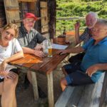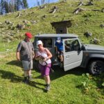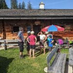 Bei Eva bleiben wir nicht lange, wir wollen nach unserer Wanderung noch einmal vorbeikommen. Sie hat Besuch aus Mühldorf, eine Freundin hat mit ihrem Chor einen Ausflug auf die Stubenalm gemacht. Eva bittet Manfred ihrer Freundin seinen abseits von Wanderwegen auf der Grubenalm liegenden Kaser zu zeigen und er stopft sie und den elfjährigen Simon zu uns in den Jeep und nimmt die zwei mit. Die beiden sind wie auch Christoph äußerst beeindruckt von der idyllischen Lage und dem Zustand des urigen Kasers, von dem aus man das Watzmannhaus sieht.