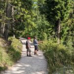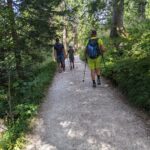 Auf dem kurzen Stück, auf dem wir den Watzmann-Wanderweg benutzen, begegnen uns erstaunlich viele Wanderer, die trotz der Hitze das Watzmannhaus ansteuern. Es ist von der Mitterkaseralm nur noch eine gute Stunde hinauf zu der berühmten Alpenvereinshütte, einem wichtigen Stützpunkt für geübte Bergsteiger, die Gipfelbesteigungen oder Überschreitungen vorhaben.