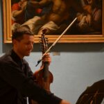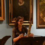 Das Trio, bestehend aus Annalisa Pappano, Viola da Gamba, Michael Anderl, Orgel sowie Simon Steinkühler, Barock Violine und Viola d´Amore führt an diesem Abend an einen besonderen Ort mit kulturellem Kontext, so ist man im Barockmuseum von opulenten Werken, vor allem der Portrait- und Landschaftsmalerei aufwändig restaurierter alter Meister umgeben. Während des Konzerts wacht ein Portrait von Agostino Carracci (bedeutendster Maler der Bolognesischen Schule, 1557-1602) über Annalisa Pappano und ihr Viola da Gamba-Spiel und ich versuche, mir vorzustellen, wie es wohl wäre, wenn dieser spanische Edelmann mit etwas fordernden Blick jetzt zu Leben erwachen und aus dem Bild treten würde. „Die Musik klingt so vertraut”, könnte er zu uns sagen, „aber was tragt ihr für komische Gewänder?” Weitere Informationen über das Catacoustic Consort, aktuelle Konzerttermine und Veröffentlichungen siehe: https://www.catacoustic.com
