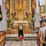 Foto: Inge Erb, Requiem mit der Fahne des GTEV Söllhuben und der Standarte des Gauverbandes I und Porträt Bartl Hollinger.