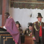 Pfarrer Rudolph am Vormittag haben wir im vertrauten Kreise die Krankensalbung vollzogen, Nachmittag verschied er friedlich und still im Kreise der Familie,wie es sein Wunsch war. Der immer freundliche, offene und großzügige Mitbürger war in den kirchlichen Gremien ein bestimmender Teil. Erneuerungen, bauliche Veränderungen an den Kirchen in Neu-und Altenbeuern begleitete er mit Umsicht, eine neue Orgel in seiner Pfarrkirche am Marktplatz war sicher einer der Höhepunke. Dies in Zusammenarbeit mit Pfarrer Josef Reuder und den vorgegeben Stellen. Bauer vertrat dies oft sehr nachdrücklich. Aufbruch, Wachstum und eine verbindende Gemeinschaft haben diese Generation geprägt, so Bürgermeister Christoph Schneider in seiner Laudatio auf den Verstorbenen. Auch wenn sein Arbeitsleben der frühe Morgen war brachte sich Albert Bauer in die Dorgemeinschaft ein. 16 Jahre, ab dem Jahr 1978 war er Mitglied im Marktgemeinderat. Die Probleme des Marktplatz und der Geschäftswelt trieben ihn an. Und wo es ging brachte er sich ein, wie bei den Festlichkeiten zur 1200 Jahrfeier oder der Marktrechtserhebung. Der Marktplatz war seine Stube das mächtige Haus am Markteingang sein Domizil und Ruheort. Das Haus war immer mit Leben gefüllt, zusammen mit seiner Frau Anna, den vier Kindern und eine weit über 20 köpfige Schar von Enkel und Urenkeln. Aber auch wer einmal ein Dach brauchte fand hier eine Bleibe. Sein sozialer Einsatz prägte ihn. Das Haus am Markt erwarb er Anfang der 60er Jahre. Zahlreiche Um-und Ausbauten unter schwierigsten Bedingungen, das Haus ist unmittelbar an die Felswand des Schloßberg gebaut, wurden von ihm und der größer werdenden Familie mit vier Kindern gemeistert. Bevor es ihn nach Neubeuern zog, in dem Haus war vorher bereits eine Bäckerei, erlernte er bei seinem Vater in Grafing den Bäckerberuf. Früh geprägt war sein Wunsch, dies fort zuführen.Über Arbeitsstellen in Rosenheim und Litzeldorf kam er nach Neubeuern. Die Gründung des Christlichen Sozialwerkes Neubeueren-Nußdorf-Samerberg wurde von Albert Bauer begleitend mitgestalt. Bleibender Wert seines Einsatzes wird die Pfarrwallfahrt nach Birkenstein bleiben, welche vom “Bertl” in den 80er Jahren angeregt wurde und die er mit Nachdruck verfolgte. Die Neubesetzung der verwaisten Pfarrstelle war Grundlage des Bittgang. Was dann auch geschah. Die Wallfahrtskirche war sein Kraftort, ebenso das wöchentliche Rosenkranzgebet in der Pfarrkirche. Eingebunden in zahlreiche Ortsvereine waren ihm Tradition und Brauchtum sehr wichtig und eine Stütze. Hauptmann Sepp Stadler verwies auf die vielen Ausrück-und Arbeitstermine, die der Albert stets mit einer ansprechenden Brotzeit begleitete. Seine Breznstangerl waren ein Markenzeichen von der Bäckerei Bauer. Die Messfeier mitgestaltet vom Kirchenchor und einer großen Besetzung der Beerdigungsmusik gestalteten in Kozelibration Pfarrer Rudolph, Diakon Sepp Stürzer und Pfarrer Dr. Xaver Komba aus Tansaniea. Er wurde in der Zeit als er seine Doktorarbeit in München schrieb, von der Famaile Bauer betreut, fand hier Wohnung. Ein persönlicher Rückblick und ein Lied in seiner Landessprache waren Ehrerbietumg an seine “bayrische “Mama”. Pfarrer Komba berichtete von vielen Aktionen, welche aus der Partnerschaft mit Tansaniea entstanden sind und wo Albert Bauer stark eigebunden war. Die Fahnen seines Heimatrachtenvereins aus Grafing, des Trachtrenverein Edelweiß Neubeuern, der Gebirgschützen und der KAB fanden sich um den Altar ein. Familienmtglieder und befreundete Kameraden aus den Vereinen führten den Leichenzug zur letzten Ruhestätte an, übergaben dort den Leichnam der geweihten Erde.