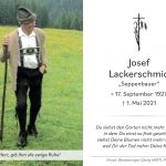 Josef Lackerschmid kam als ältestes von drei Geschwistern (Bruder Max verstarb im Alter von eineinviertel Jahren) auf dem Seppen-Bauernhof zur Welt und war von Anfang an mit seinem Bruder Alois in die Hofarbeit eingebunden. Bereits als Kind musste er seinem Vater beim Holzrücken im Bergwald mit dem Pferdegespann helfen, ein regelmäßiger Schulbesuch war deshalb nicht möglich. Zum Ende des Zweiten Weltkriegs wurde er zum Militärdienst eingezogen, alsdann arbeitete er mit seinem Bruder auf dem landwirtschaftlichen Betrieb weiter bis er diesen 1972 übernahm und im Jahr 2002 an die Familie Simon weitergab. „Sein ganzer Stolz waren die Kaltblutpferde und die Pinzgauer Rinderdherde. Lange war er in der Pferdezuchtgenossenschaft Prien und Umgebung aktiv und die Teilnahme am Traunsteiner Georgiritt war ihm eine besondere Ehre“, so der Geistliche, der auch noch daran erinnerte, dass Josef Lackerschmid bis zum Vorjahr ein treuer Teilnehmer bei den Pinzgauer Almwanderungen und ein verlässlicher Besucher beim Viehmarkt in Maishofen war.