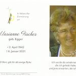 Im Alter von 78 Jahren verstarb nach kurzer schwerer Krankheit Marianne Fischer, Gröbnerin von Ernsdorf in der Gemeinde Prien. Bei der Trauerfeier in der Pfarrkirche „Maria Himmelfahrt“, die coronabedingt nur im engsten Familienkreis sein konnte, erinnerte Pfarrer i.R. Andreas Zehetmair an das von Familiensinn und Heimatliebe geprägte Leben der Verstorbenen, die in Antwort auf dem landwirtschaftlichen Anwesen „Beim Schönherr“ das Licht der Welt erblickte.