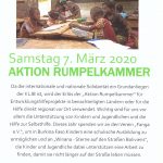 Am Samstag, 7. März ist im Landkreis Rosenheim durch die Katholische Landjugendbewegung (KLJB) wieder die Aktion Rumpelkammer. Die Straßensammlung beginnt um 8 Uhr, gesammelt werden Kleidung und Alttextilien, dazu gehören Anzüge, Woll- und Strickwaren, Bett- und Haushaltswäsche, Federbetten, Schuhe (paarweise), Hüte und Unterwäsche. Für die Sammlung liegen in vielen Geschäften Plastiksäcke der KLJB auf. Weitere Informationen zu der Aktion gibt es in den Pfarrbüros, bei der KLJB (Tel. 0176-50316135) sowie im Internet unter www.kljb-rosenheim.de.