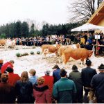 Die Gründung der Viehzuchtgenossenschaft Rosenheim-Ost erfolgte am 25. August 1977 im Gasthaus Weingarten auf der Ratzinger Höhe, nachdem das Tierzuchtamt Traunstein 1977 auf-gelöst wurde. Die Milchleistungsprüfung wurde für den gesamten Landkreis Rosenheim dem Tierzuchtamt Miesbach zugeteilt. Zuchtberatung und Vermarktung sollten folgen, und damit eine über 100-jährige Tradition gebrochen wer-den. Mit diesem Vorhaben der staatlichen Land-wirtschaftsverwaltung waren die Züchter der Chiemsee Gemeinden nicht einverstanden. Schließlich wurde 1894 die 1. Pinzgauer Vieh-zuchtgenossenschaft auf dem Samerberg gegründet. Am 29. August 1896 erfolgte dann in Traunstein der Zusammenschluss von acht Viehzuchtgenossenschaften zum „Verband für Reinzucht des Pinzgauer Rindes in Oberbayern“. Nachdem der Samerberg im Zuge der Ras-senumstellung auf Fleckvieh bereits 1968 dem Miesbacher Zuchtgebiet zugeteilt wurde, verblieben die westlichen Chiemsee Gemeinden beim Traunsteiner Zuchtverband. Außerdem war die Verkehrsanbindung nach Traunstein günstiger und mit dem Neubau der Chiemgau-halle eine hervorragende Vermarktungshalle entstanden.