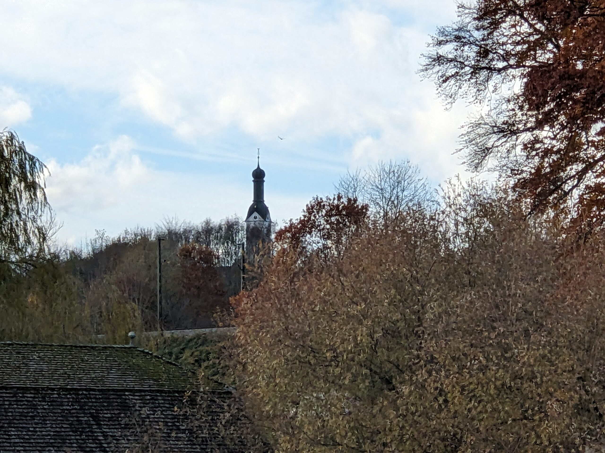 Blick von der Schafwaschener Bucht zur Rimstinger Kirche