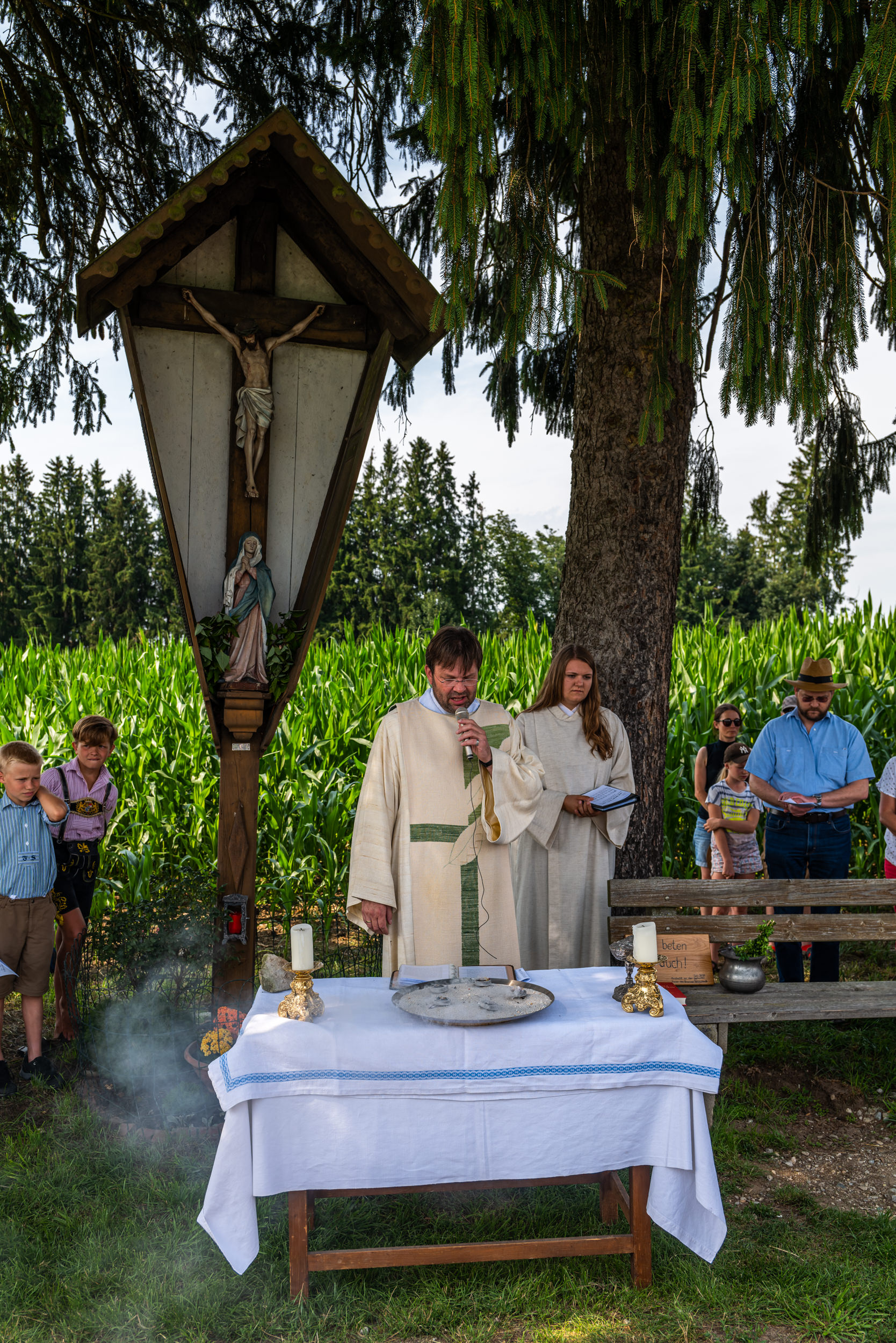 Gemeindeassistentin Jacqueline Egold (re) und Gemeindeassistent Tobias Gaiser (li) bei der Andacht zum Brenner Nordzulauf
