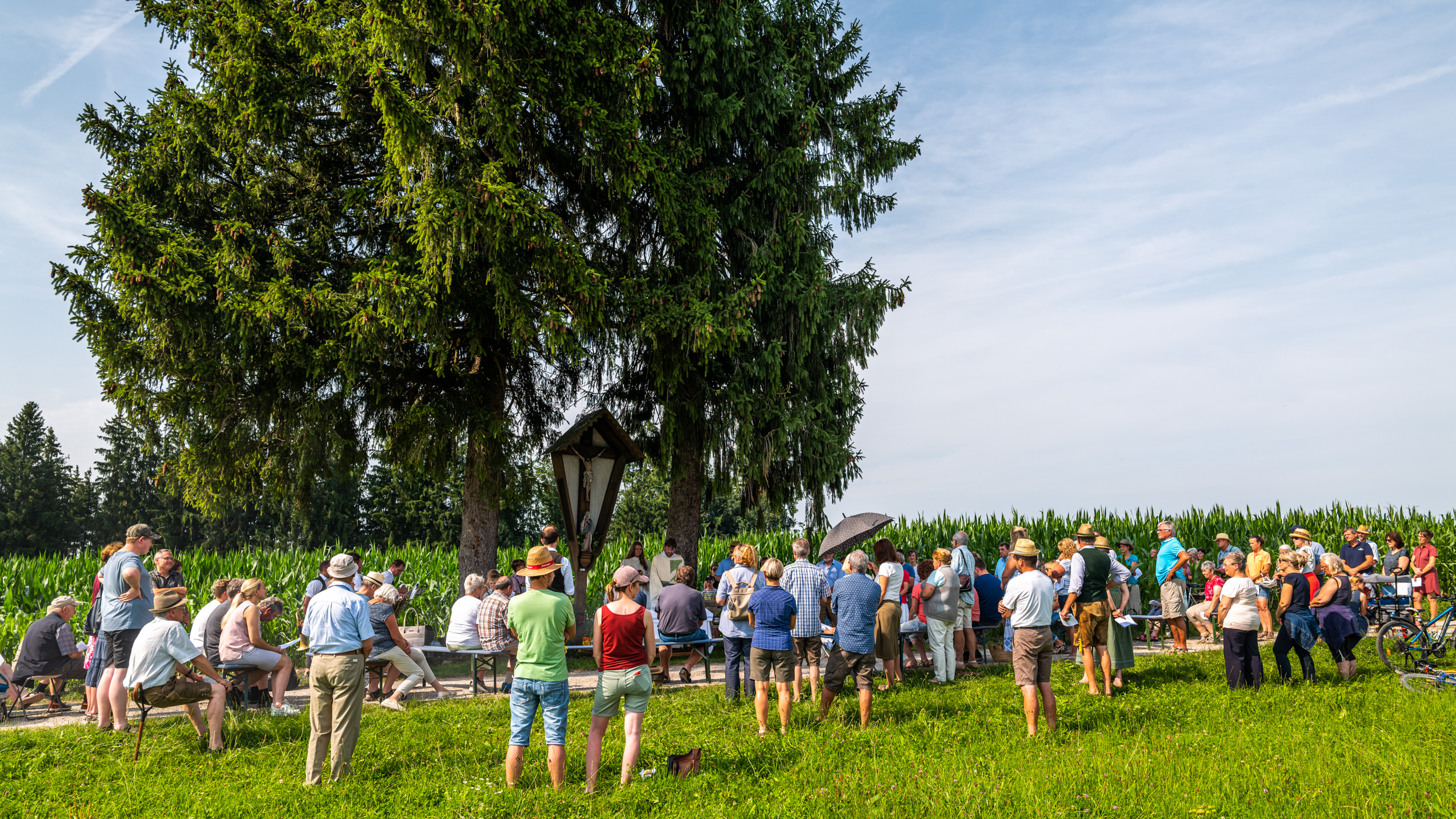 Andacht beim Feldkreuz bei Untermoosen/Riedering unter dem Motto „…und Beten hilft auch!“