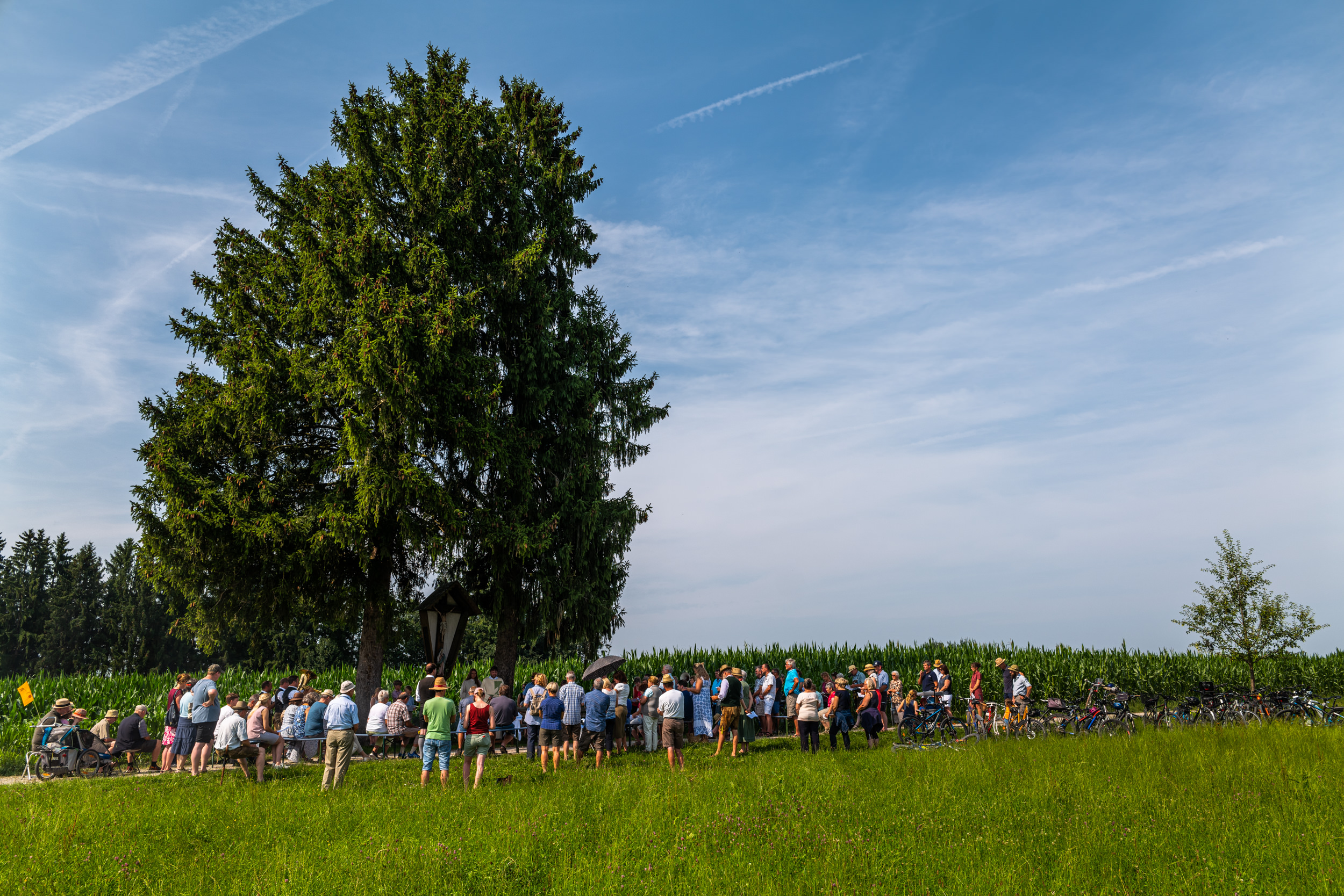 Andacht beim Feldkreuz bei Untermoosen/Riedering unter dem Motto „…und Beten hilft auch!“