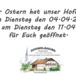 Der Anderlbauer von Frasdorf im Chiemgau informiert, dass er über Ostern seinen Hofladen am Dienstag, 4. April und am Dienstag, 11. April geöffnet hat.