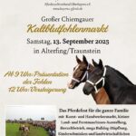 Am Samstag, 13. September findet in Alterfing bei Traunstein ein großer Chiemgauer Kaltblutflohenmarkt statt. Hierzu lädt der Pferdezuchtverband Oberbayern e.V. ein.