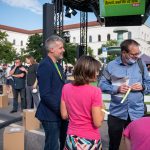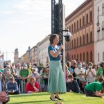 Interessierte und Fans der grünen Spitzenkandidatin juckte das freilich wenig, die waren zahlreich gekommen – mit U-Bahn oder Radl. Nach der Landtags-Grünen Katharina Schulze und Bürgermeisterin Katrin Habenschaden trat dann auch Baerbock ans Mikrofon.