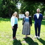 Fotos/Repros: Hötzelsperger – 1. Elisabeth Heider (li.) und Tobias Bösl vom Bayerischen Landesamt für Denkmalpflege zusammen mit Freundeskreis-Vorsitzenden Annemarie Biechl am höchsten Punkt der Fraueninsel – darunter befinden sich die jüngsten archäologischen Entdeckungen. 2. Tobias Bösl und Elisabeth Heider beim Vortrag in der Aula des Klosters, 3. Alte Dokumente vom Bayer. Landesamt für Denkmalspflege 4. Friedenszeichen Fraueninsel aus dem Vorjahr.