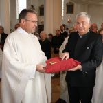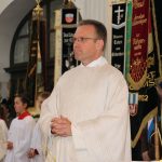 Schon lange hatten die Aschauer auf diesen Tag gewartet, an dem der neue Pfarrherr offiziell der Gemeinde vorgestellt würde und mit der symbolischen Übernahme der Kirchenschlüssel und dem Rundgang in der Pfarrkirche die Verantwortung für den gesamten Pfarrverband übernehmen würde. So war die Kirche bis zum sprichwörtlich letzten Platz gefüllt, über 20 Fahnenabordnungen der Vereine von Aschau, Frasdorf, Sachrang und Umrathshausen standen mit ihren Fahnen, Bannern und Standarten im Altarraum und gaben dem neuen Pfarrherrn erstmals die Ehre. Die gesamte Geistlichkeit und die Ministranten aus allen vier Pfarrgemeinden zogen mit Dekan Reichel und Pfarrer Janßen in das Gotteshaus ein. Hermann Overmeyer, während der Abwesenheit des rechtmäßigen Pfarrherrn eingesetzter Pfarradministrator verlas vor der versammelten Gemeinde die Urkunde von Reinhard Kardinal Marx, in der Paul Janßen als neuer Pfarrer mit der Leitung der Aschauer Pfarrgemeinde und des Pfarrverbandes Oberes Priental beauftragt wird. Dekan Daniel Reichel führte den frisch ernannten Pfarrherrn dann an alle Stationen im Gotteshaus, an denen er künftig tätig sein wird. An der Kirchentür überreichten ihm die vier Kirchenpfleger Werner Weyerer aus Aschau, Johannes Fischer aus Frasdorf, Eva-Maria Scheck aus Umrathshausen und Georg Graf von Saurma aus Sachrang den großen Kirchenschlüssel zum Hauptportal und damit die Schlüsselgewalt über alle Kirchenbauten des Pfarrverbandes. Beichtstuhl, Ambo und Hochaltar waren die weiteren Stationen an denen er sein Amt als Seelsorger in verschiedenen Funktionen ausüben wird. Der Kirchenchor mit Rupert Schäffer und Christine Klinger an der Orgel sowie die Musikkapelle Aschau umrahmten den Gottesdienst musikalisch.