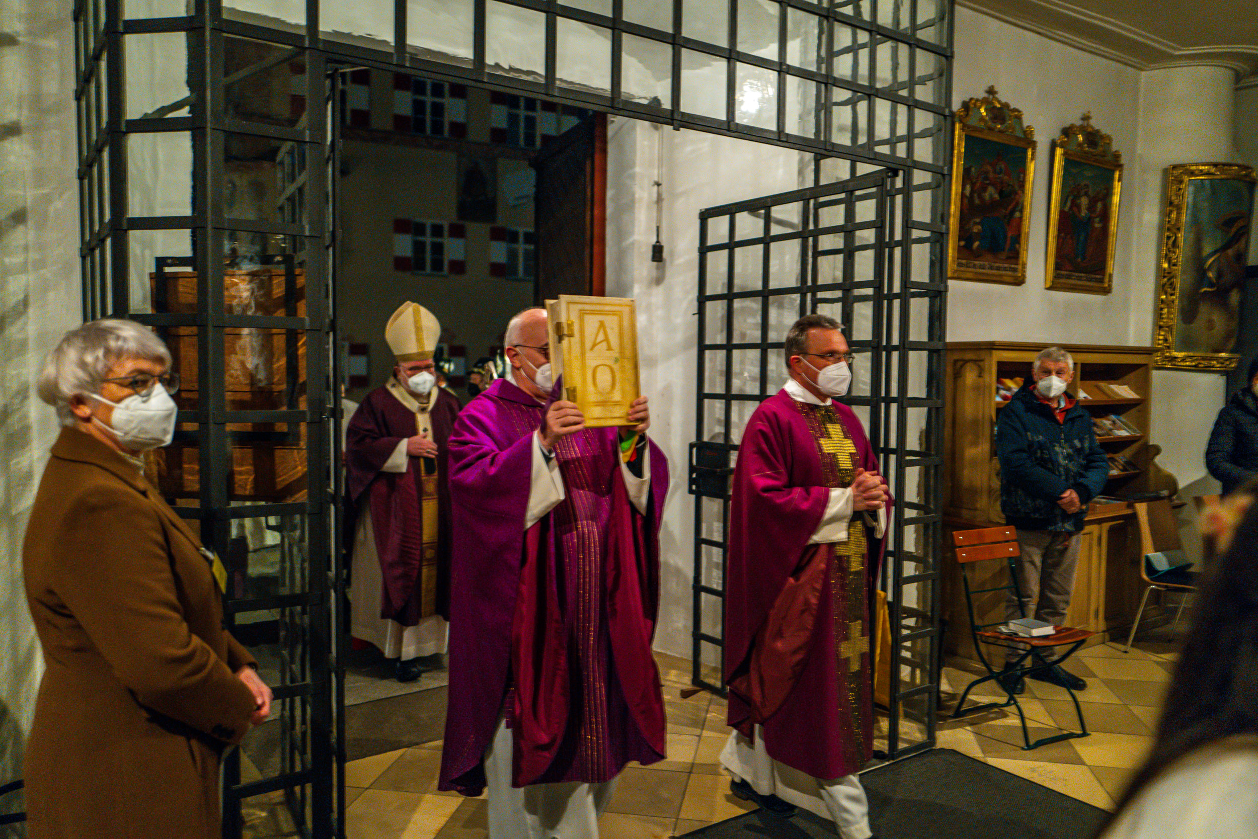 Kardinal Marx feiert Messe zur Aufstellung von barocker Passionsdarstellung und moderner Lichtkunst.