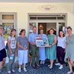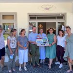 Der Leiter der Tourist Infos Herbert Reiter (Mitte) und Mitarbeiterin Verena Weinhammer (Dritte von rechts) freuten sich die Vermieterinnen die „A Schau“-Fenster Roas an verschiedenen teilnehmenden Betrieben vorstellen zu dürfen. Auch die Ladeninhaberin Tanja Hailer (Vierte von rechts) von „Handg‘macht mit Liebe“ war vor Ort mit dabei. Bei regem Austausch unter den Vermietern ging es zum Abschluss weiter in den Aschauer Kurpark, wo der neukonzepionierte Foto-Bankerl-Rahmen präsentiert wurde. Weitere Informationen und das ausführliche kostenlose Faltblatt „Do schau hi“ ist in der Tourist Info Aschau i.Chiemgau, Tel. 08052/90490 bzw. per Email unter info@aschau.de erhältlich.