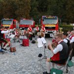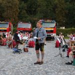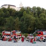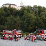 „Wasser marsch!“ spielten die Musiker der Musikkapelle Aschau mit ihrem Dirigenten Michael Morgott beim großen Standkonzert vor der Aschauer Festhalle. „Wasser marsch!“ gleich im doppelten Sinn, denn die Aschauer Feuerwehr hatte als Beitrag zum Konzert und zum Abschluss ihres Jubiläumsjahres alle Fahrzeuge aufgefahren und zeigte mit dem Tanklöschfahrzeug TLF 3000 und der Drehleiter DLK 23/12 die neuesten Errungenschaften der Wehr. Stimmungsvoller Abschluss und Höhepunkt des Abends war das „Aschauer Lied“ gespielt vom Bläserquartett hoch oben über den Köpfen der Zuhörer im Korb der Drehleiter. Bereits zu Ostern ging dieses Lied – gespielt vom Trompeter – auf der Drehleiter in den sozialen Medien rundum die Welt.