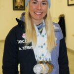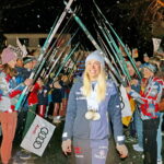 Die frischgebackene Junioren-Doppelweltmeisterin Julia Kink mit ihren fünf Medaillen. Die Kinder und Jugendlichen des Heimatvereins WSV Aschau standen Spalier für „ihre Julia.