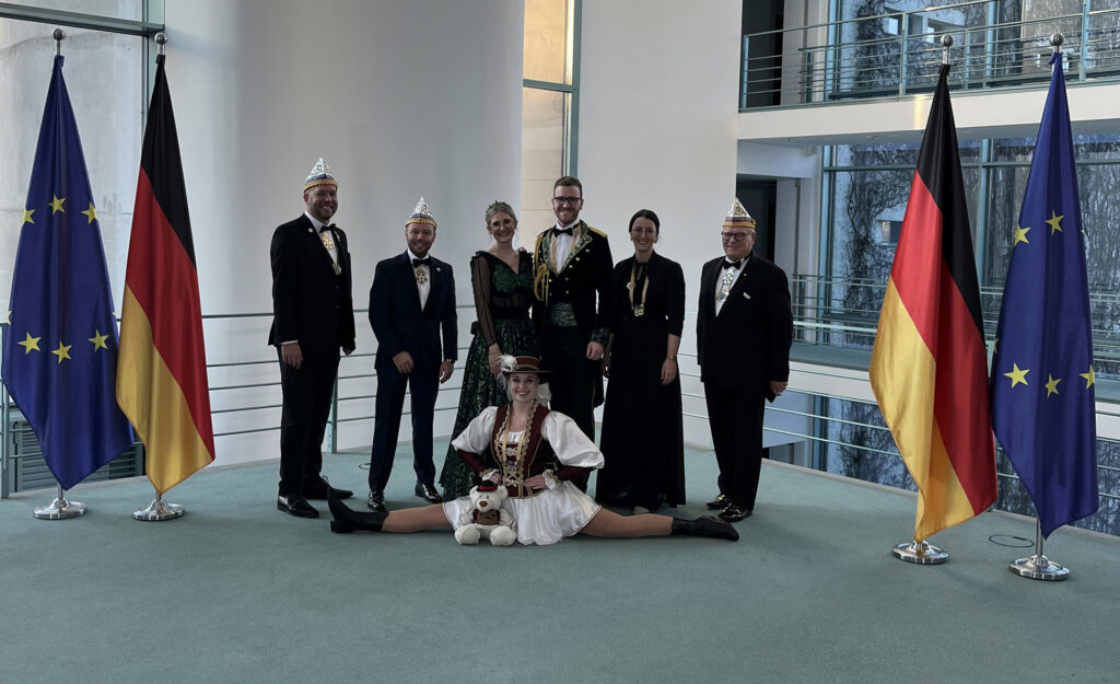 Eine Delegation der Faschingsgilde Aschau e.V. repräsentierte kürzlich das Land Bayern bei einem festlichen Empfang im Bundeskanzleramt. Gemeinsam mit den Vertretern des Bunds Deutscher Karneval e.V., Landesverband Oberbayern, begaben sich Prinzessin Jenny I. und Prinz Sebastian III. sowie Gardemajor Franziska Sichler und Kassier Monika Ruhsamer auf den Weg nach Berlin.