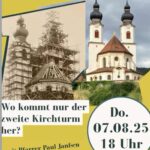 “Wo kommt nur der zweite Kirchturm her?” – Unter diesem Titel wird am Donnerstag, 7. August um 18 Uhr eine Kirchenführung in Aschau i.Ch. aus Anlass des Jubiläums „150 Jahre Familie von Cramer-Klett in Aschau“ angeboten.