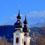 Ein Anblick wie man ihn sonst ganz sicher nicht oft hat. Die Massen an Neuschnee haben es mit sich gebracht, dass der Aschauer Hausberg, die Kampenwand, derzeit regelrecht erleuchtet. Der dreigezackte Kamm ähnelt den Zacken einer Krone und beim ersten Anblick glaubt man direkt, zu sehen wie die einzelnen Schneespitzen regelrecht gen Himmel wachsen. Imposant und mächtig erhoben; man könnte fast meinen, das Kaltgestein ist mit Zuckerguss ummantelt. Schon ohne Schnee ist die Kampenwand weithin zu erkennen, doch derzeit thront diese noch weiter sichtbar. Wenn dann dazu noch im Vordergrund die imposante doppeltürmige Aschauer Katholische Pfarrkirche „Darstellung des Herrn“ im Vordergrund zu sehen ist, dann gibt es das perfekt Bilderbuch-Bild ab. Die klirrende Kälte ist beim Anblick regelrecht zu spüren. Hier kann man es nur schwer glauben, dass in wenigen Monaten wieder die satten Almwiesen erblühen und die Kühe die Bergwelt genießen können. Doch nun heißt es erst mal, die Winterpracht mit den magischen Momenten zu genießen.