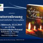 Am Mittwoch, 11. Dezember um 15 Uhr lädt das Aschauer Seniorenheim alle Interessierten zur stimmungsvollen Lesung „Lichter im Advent“ ein. Mehrere Autorinnen des Buchadventskalenders sind vor Ort, um mit kurzweiligen Beiträgen auf Weihnachten einzustimmen.