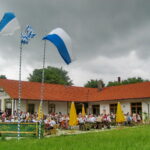 Fotos: Hötzelsperger – 1. Im Mittelpunkt vieler Veranstaltungen: das Vereinshaus in Atzing – 2. Höhepunkt des Jubiläumsjahres war ein Waldfest im Buchenwald – für 2023 sind wieder zwei Termine geplant