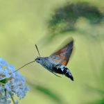 Auch im eigenen Garten kann man einiges entdecken, hilfreich dabei ist unter anderem ein Buddleia Strauch, aber auch andere Pflanzen locken Insekten an. Auf dem Buddleia Strauch schöpft ein Taubenschwänzchen Nektar, auf der Raukenblume labt sich ein Karstweißling, und auf der Minze sitzt eine Totenkopf Schwebefliege. Am Buddleia Strauch war nicht nur einen Taubenschwanz sondern auch einen C-Falter mit eingerollten Rüssel (proboscis). Der Schillerfalter nimmt gerne vom Gestein Mineralien auf, weshalb er nicht nur an Blumen, sondern auch auf der Strasse sitzt!