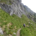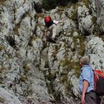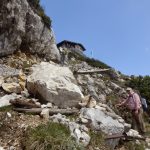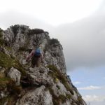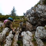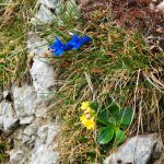Dann beginnt die  Kletterei.  Trittsicherheit, Schwindelfreiheit und gute Kondition sind erforderlich.  Es sind immer wieder kurze, aber nicht allzu schwierige Kraxelstellen ungesichert zu bewältigen, es ist aber nicht sehr exponiert. Als Entschädigung für die Mühsal, sehen wir immer wieder Enzian zwischen den Felsen. Wir überwinden ein paar etwas kritischere Stellen, dann kommen wir auf den Normalweg, auf dem dann bald auch das Staufenhaus in Sicht kommt.