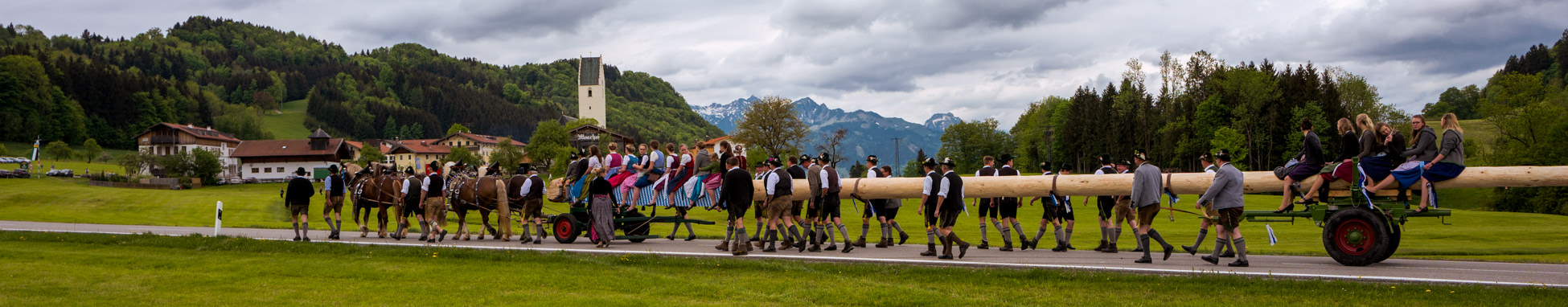 Der Roßholzner Maibaum wurde gefällt, bewacht, gestohlen, ausgelöst, aufgestellt, geschmückt und natürlich gefeiert…Der Trachtenverein Altenbeuern brauchte den Maibaum heute nach Roßholzen zurück, begleitet von der Feuerwehr Neubeuern. Martin Schober, Vorstand des Trachtenvereins Roßholzen, koordinierte das Aufstellen und gab das Komando: “Auf geht`s Buam – hooooo-Ruck”. Gebündelte Kraft brauchte es, um den großen, langen Baum aufzustellen. Natürlich wurde der Baum ganz traditionell mit Manneskraft gestemmt. Für die musikalische Unterhaltung sogte die Wieslberg-Musi. Dies hat Jung und Alt heute gleichmaßen begeistert. Wir zeigen hier die schönsten Bilder des Tages, aufgenommen von Rainer Nitzsche