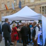Bevor Ise Aigner danach den traditionellen Fassanstich vornahm, wünschte sie den Gästen einen geselligen Oktoberfest-Auftakt mit den Worten: „… so begrüße ich Sie nun heute am größten Stammtisch von Berlin, hier in der Bayerischen Landesvertretung, mit dem Motto: Leben und leben lassen“